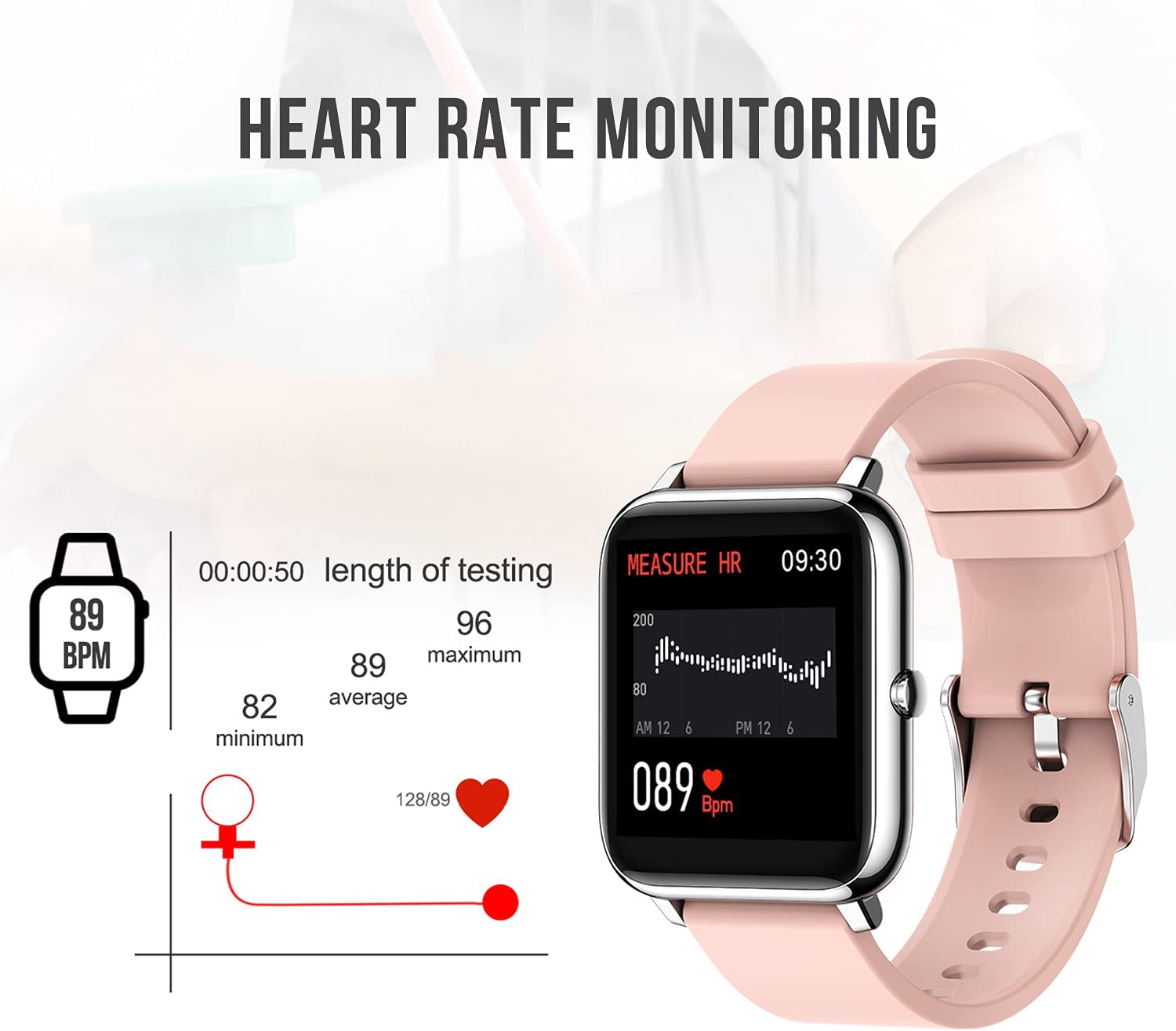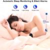 8. A No, it does not monitor that. It only monitors heart rate, blood pressure, oxygen level, sleep, exercise, calories burned and steps. You can receive messages from your phone on it, weather, has a timer as well and it has a camera. hope this helps! I really like mine and the charge has lasted 10 days at a time. The app keeps track for 7 straight days so you can compare. The app will show you how long your were in deep sleep and light sleep, it keeps an average of your heart rate while you sleep as well.