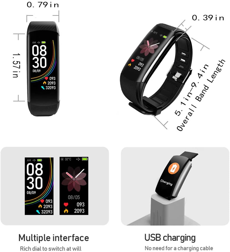 • Smart Watch, Fitness Tracker with Body Temperature Thermometer Blood Oxygen Heart Rate Blood Pressure Monitor Sleep Monitor Step Counter Pedometer Calorie Counter IP67 Waterproof for Women Men Kids