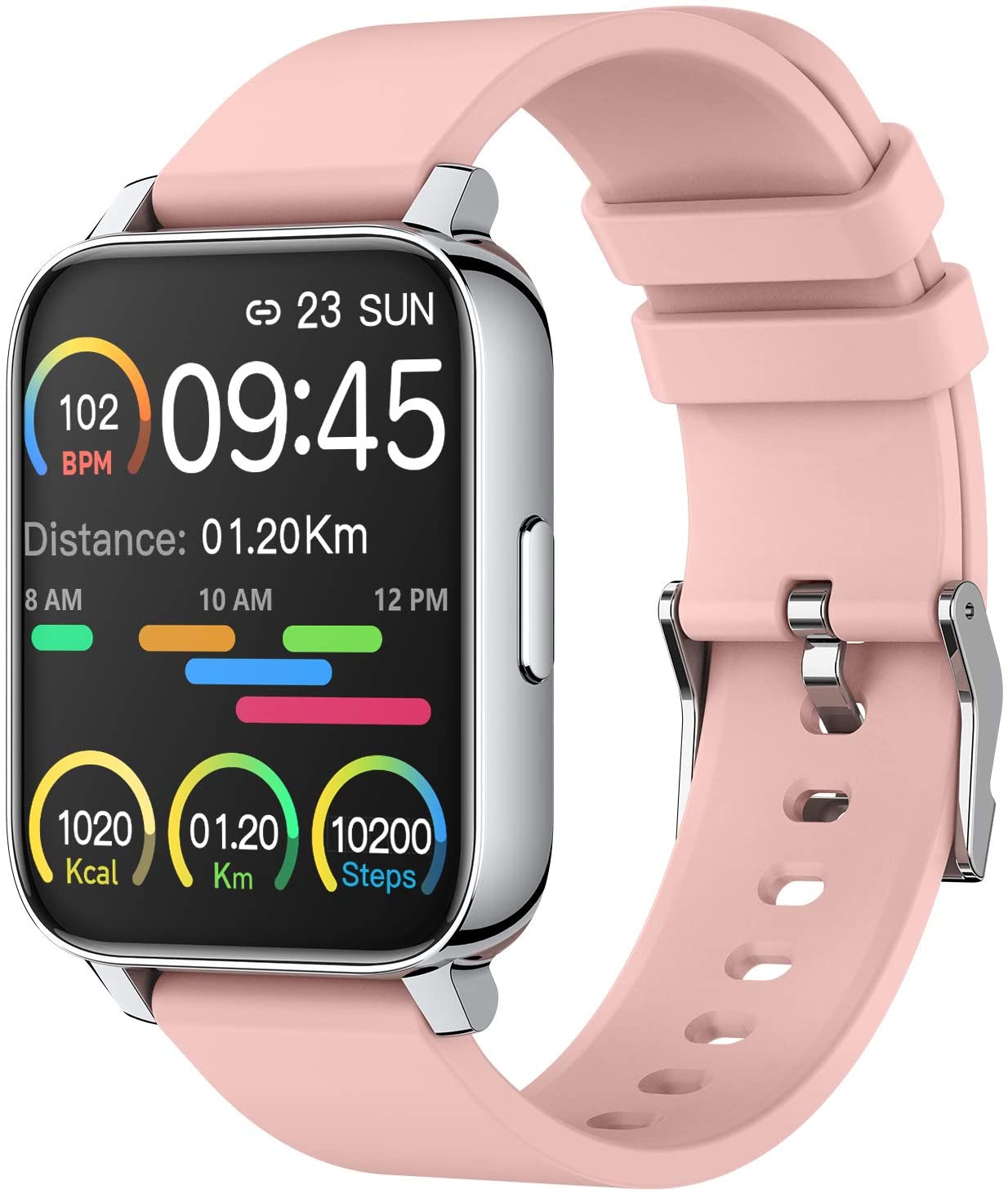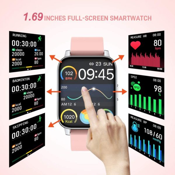 Smart watch for women includes multiple features to help run your day and keep you active, including breathing exercises, timers, sedentary reminders, a stop watch function, and much more.