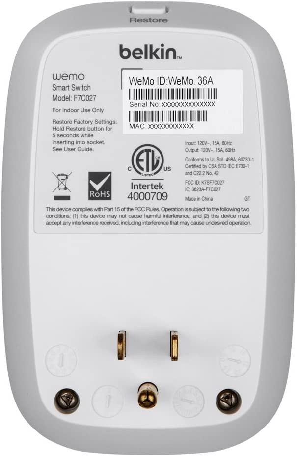 Did you forget to turn off the window A.C.? How about that curling iron? Want the living room lamp to turn on when the sun goes down—automatically? The Wemo Switch gives you control of your lamps and small appliances whenever you want, wherever you choose, with tons of options for scheduling and automation. Paired with Amazon Alexa, you can control your lamps and appliances with just the power of your voice. When Wemo works with Nest Thermostat, you can set your lights to turn off automatically when you leave the house, and on when you get home again. No central hub or subscription is required. Wemo also has an on/off switch on the unit, in case the Wi-Fi goes down. Compatible with Apple iOS 8 or higher and Android 4.1 or higher. Electrical Rating 120V/15A/60Hz/1800W. 24-hr Wemo support is available at 1-844-745-WEMO. Wi-Fi: 2.4GHz 802.11n,Product dimensions:2.9 inch L x 4.5 inch H x 2.2 inch D,Weight:8.9 ounces,Plugs into any regular 120v wall outlet.